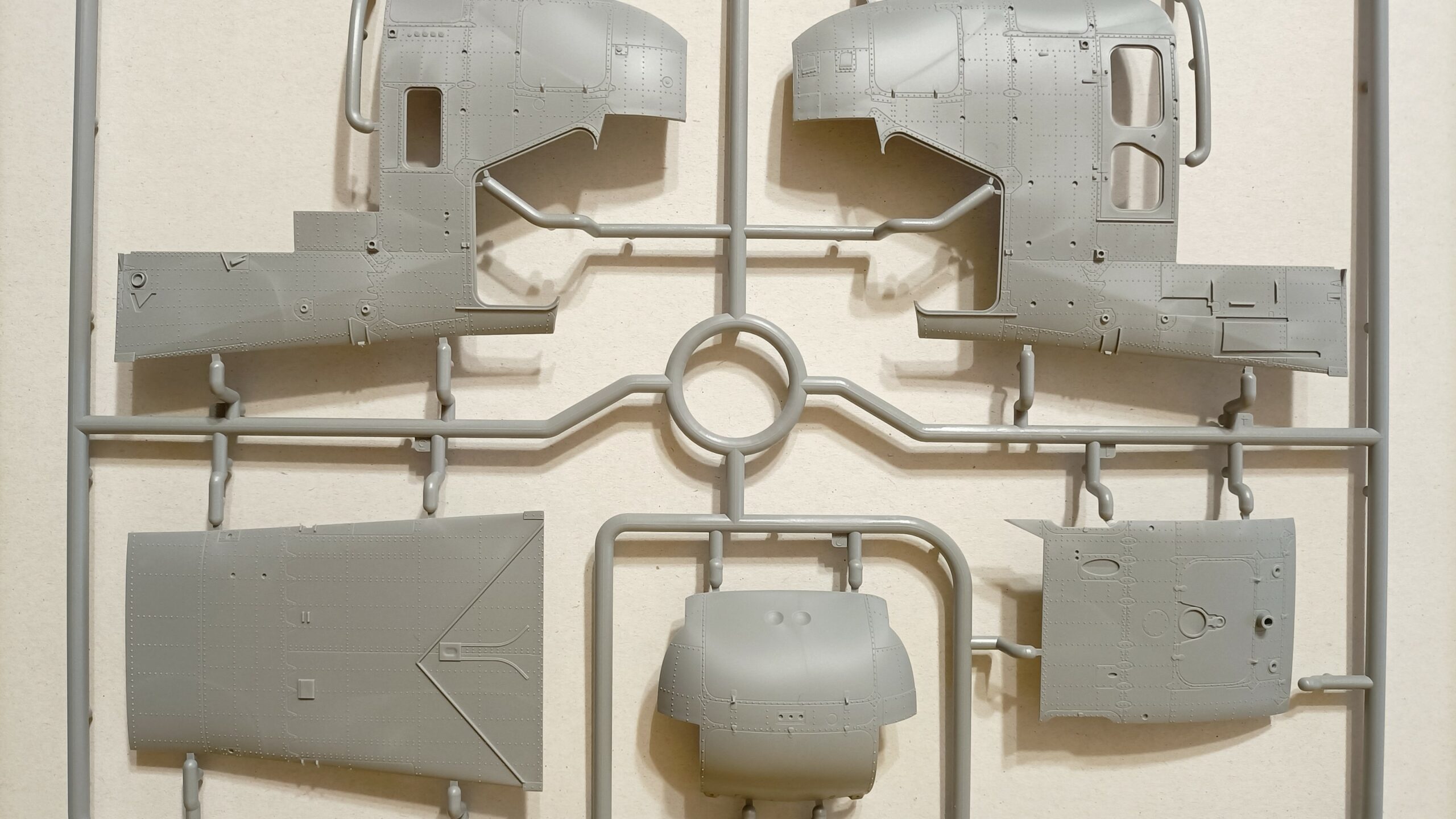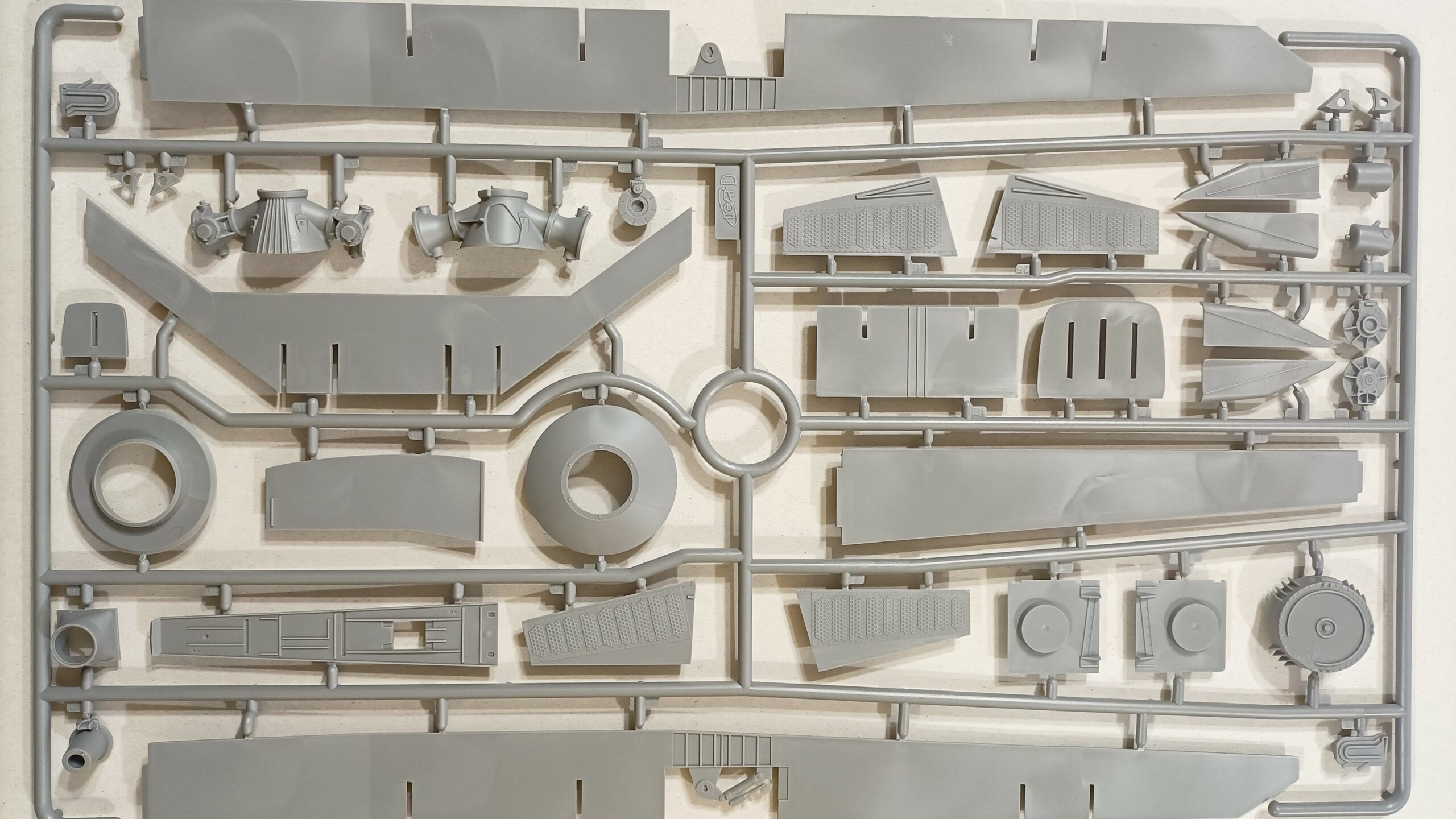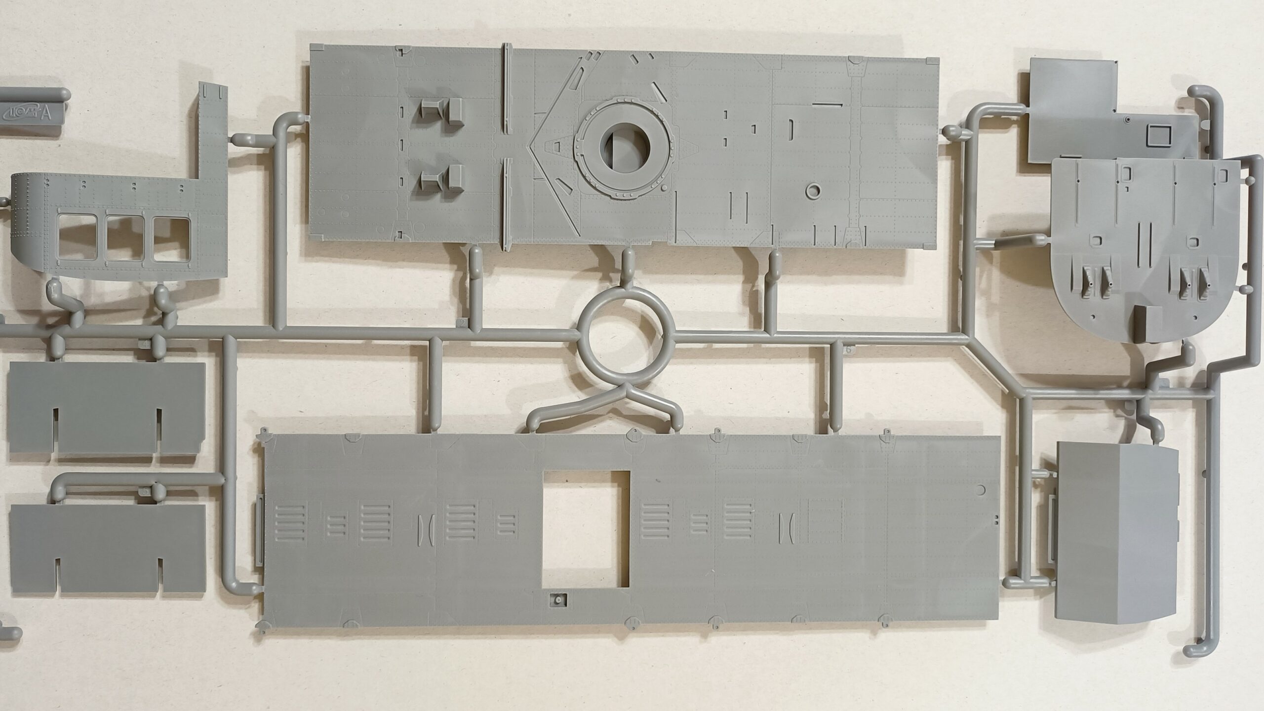 Non so dirvi, ora, se il montaggio sarà preciso e se la scelta della composizione dei pezzi sia la migliore possibile, ma posso dire che ad una prima impressione la plastica è ottima, grigio opaco e mi dà l’impressione di rigidità e lavorabilità allo stesso tempo.