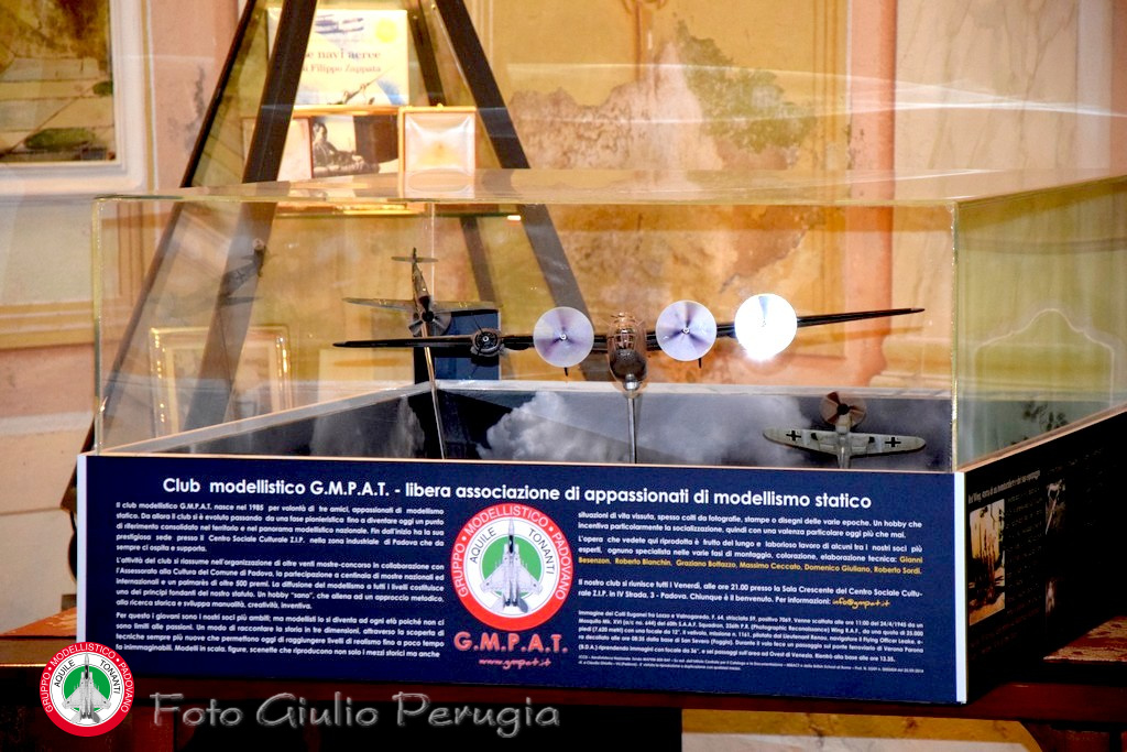 Dopo qualche perplessità decidemmo comunque di portare avanti il progetto perchè denso di importanti significati: la Memoria, il riconoscimento del sacrificio di chi ha combattuto in nome dei propri ideali da qualunque parte degli schieramenti fosse, il ripudio della violenza e tanti altri. Dovevamo però cercare un’altra prestigiosa sede, che sapesse valorizzare tutto questo trovandola poi, finalmente, nel Museo dell’Aria di San Pelagio. Abbandonammo però il progetto del diorama-box per passare ad una versione aperta esposta in una teca trsparente.