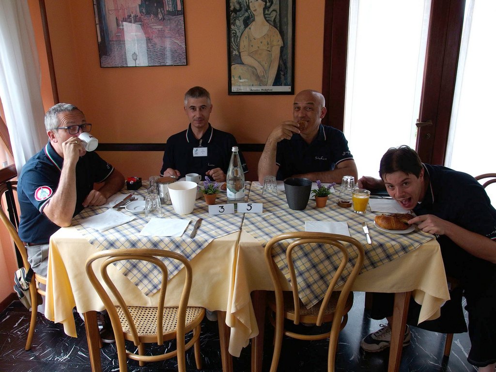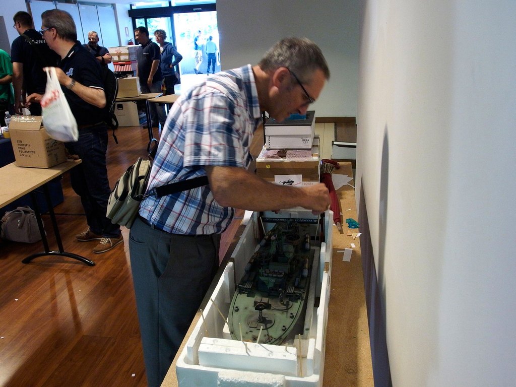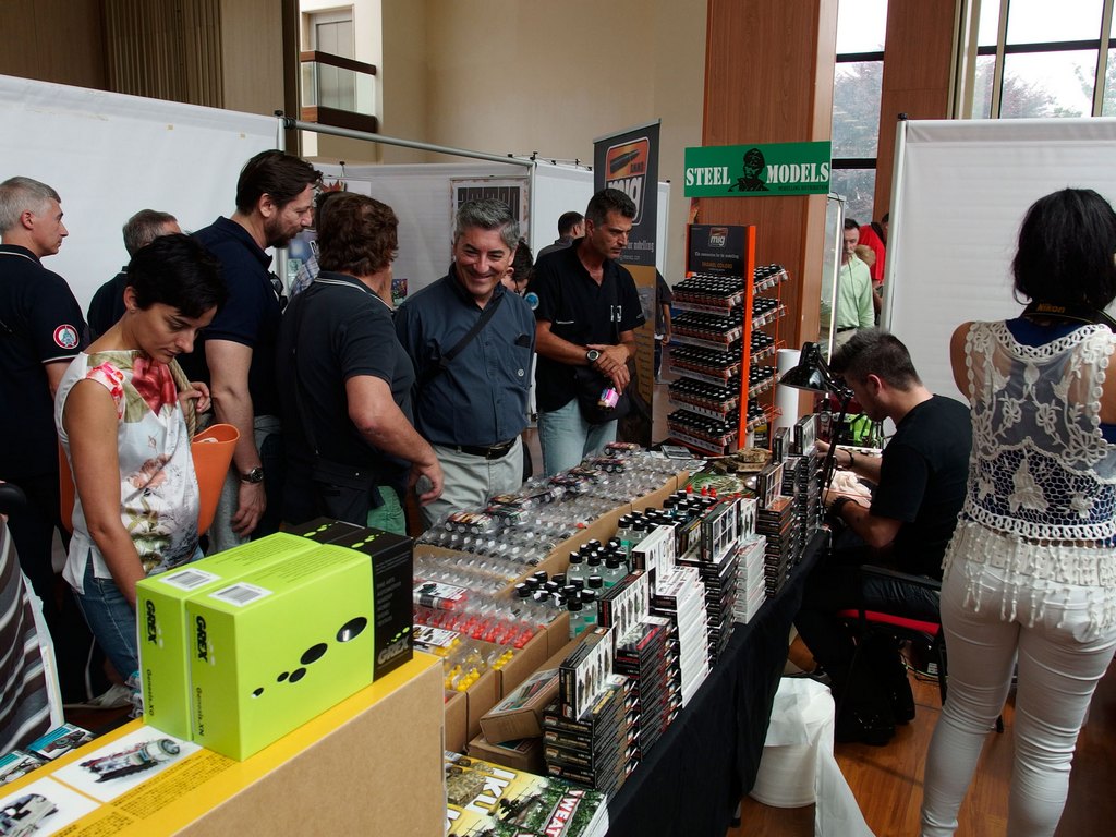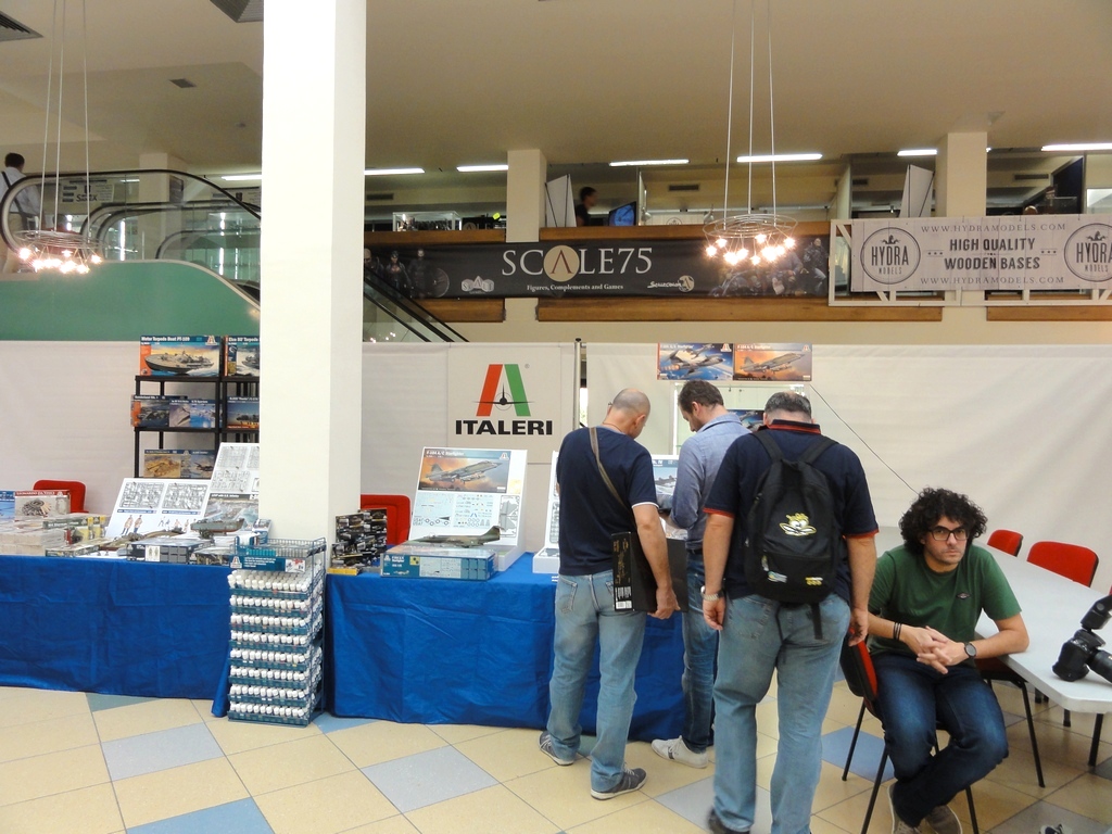 Il sabato parte bene con molti altri modellisti che si presentano al bancone per iscriversi o per ritirare l’omaggio e posare le loro opere. Verso mezzogiorno veniamo raggiunti anche dal grosso dello squadrone aquile composto dal presidentissimo, Luca C., Stefano Z. ed il super fotografo Roberto S.