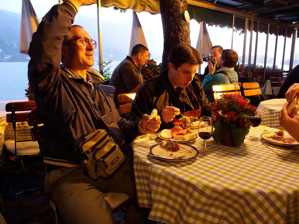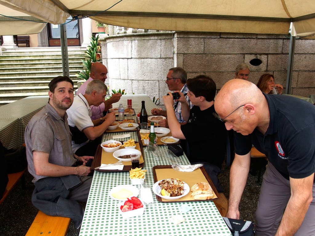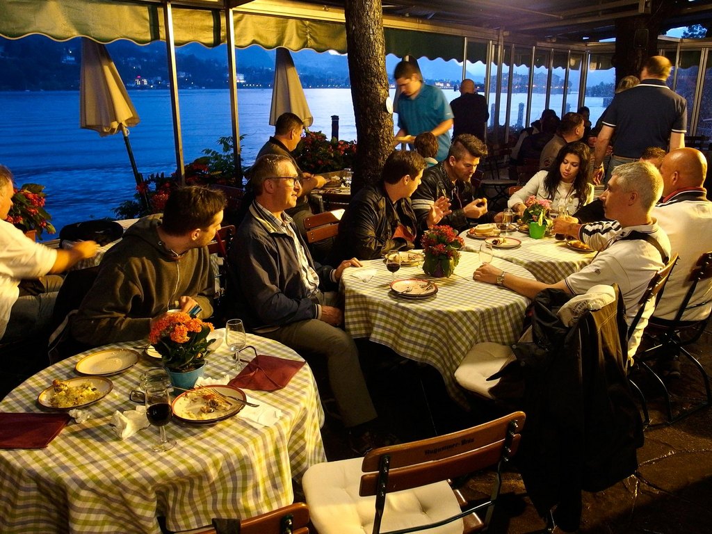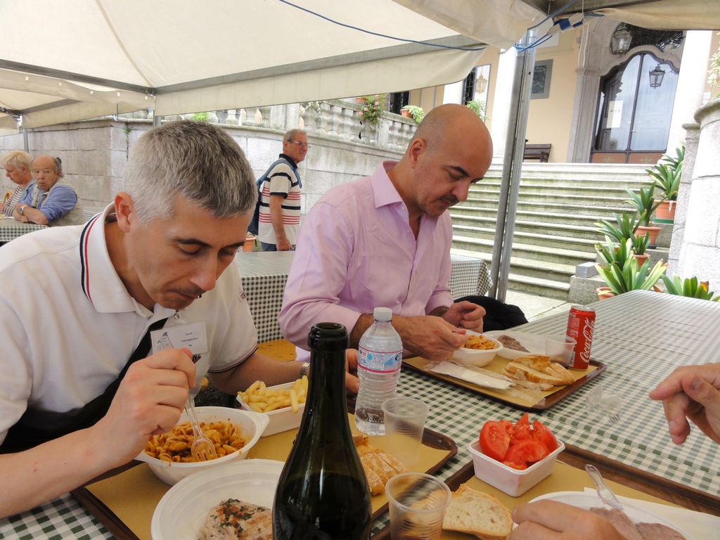 Si comincia anche il percorso di dimostrazioni e workshop (nota dolente tutti a pagamento) che continuerà fino a domenica. La serata prevede invece, per chi si é iscritto, una cena sull’Isola Bella gironzolando tra una bancarella e l’altra per assaggiare le varie specialità della zona e non solo. Peccato pero’ che il meteo decida di frapporsi tra l’ “homo modellisticus affamatus” e la sua preda scaricando sulla zona del lago fulmini, lampi e tonnellate di acqua gelata e costringendo i malcapitati a stiparsi all’interno dell’unico ristorante convenzionato dell’isola per accaparrarsi il meritato buffet. In piedi o comodamente seduti nel bar a fianco, all’aria aperta (ma al coperto) degustando un buon bicchiere di Barbera d’Alba (ndr sono state anche avvistate ex aquile in borghese a bordo di motoscafi sospetti…).