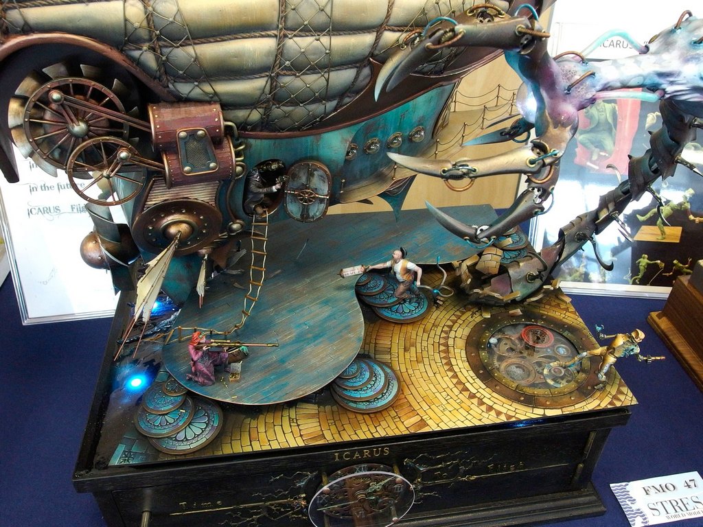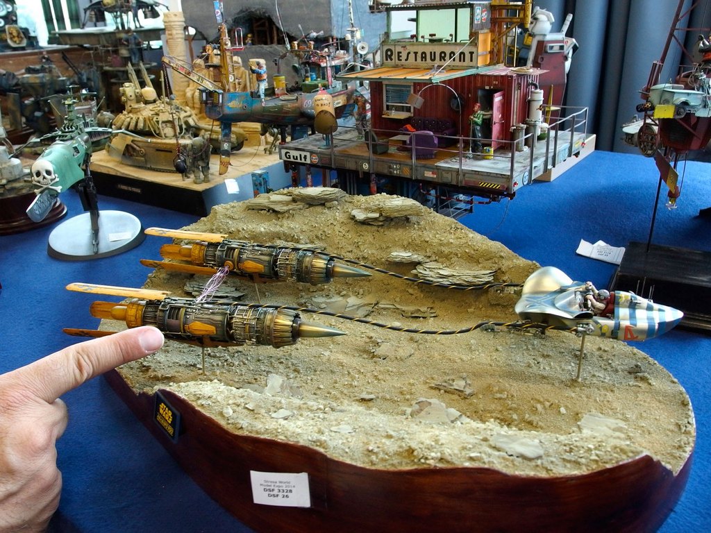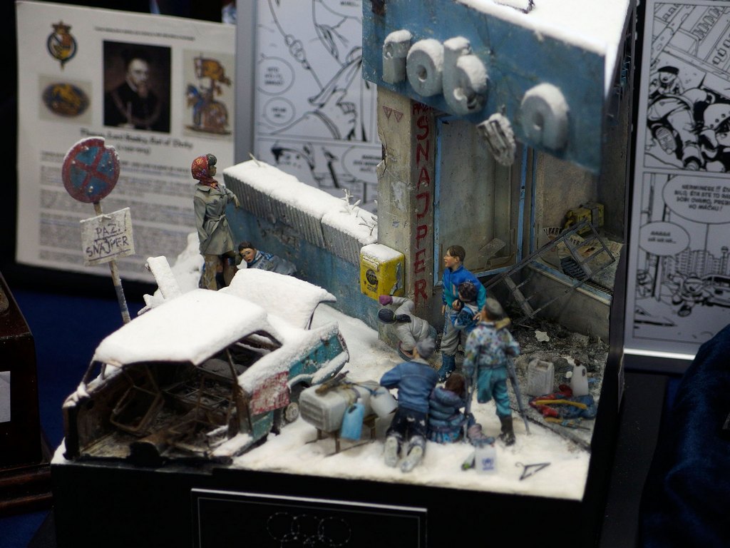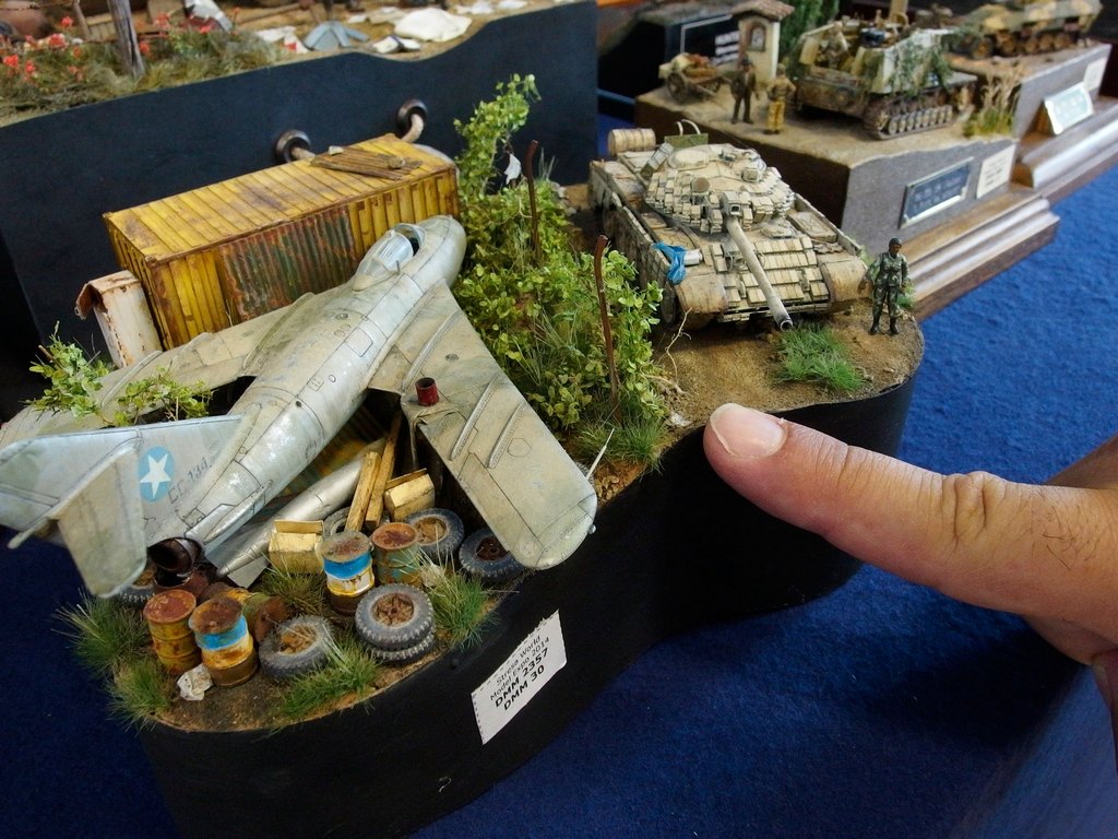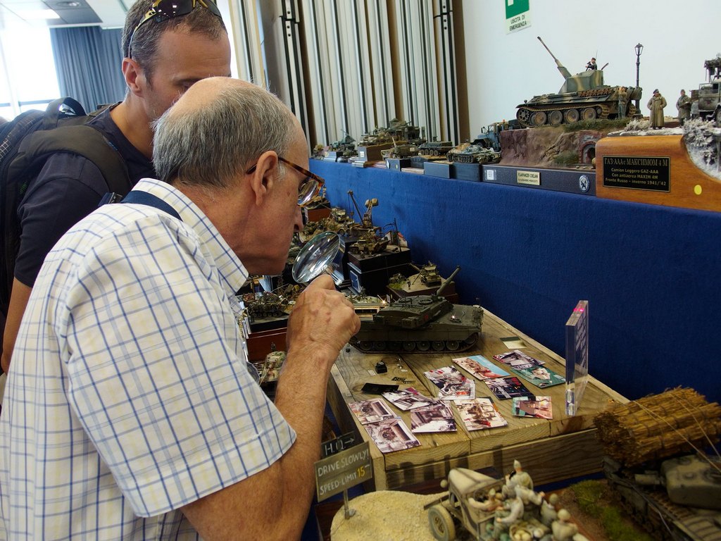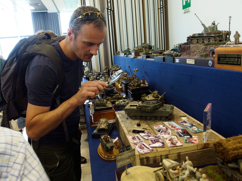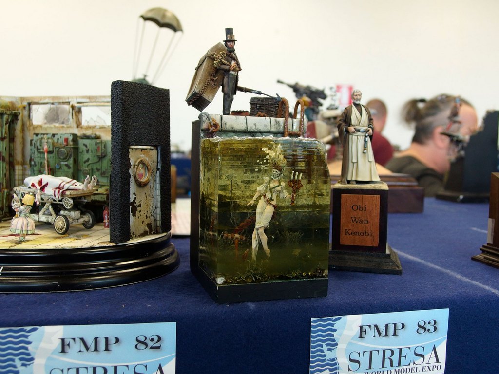 Cio’ che lascia stupefatti é l’elevatissima qualità dei soggetti e, a parer mio, anche la fantasia di molti modellisti. Un solido cordone di sorveglianza organizzato dalla giuria (composta da molti volti noti del modellismo) fa si che non vi siano incidenti che coinvolgano i modelli esposti sulle basi da esposizione.