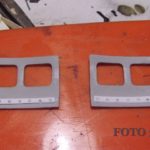 Dopo aver deciso quale struttura interna produrre, cominciai ad eliminare i due pannelli con i finestrini, perché questa versione ne è priva ed a costruire con plasticard quelli nuovi, sagomando i due pezzi seguendo la linea della fusoliera. Successivamente, usando del plasticard, preparai i longheroni dei portelloni; quelli sulla parete interna di fusoliera immediatamente dietro ai piloti li feci usando fogli di ottone da 0,5 mm. (foto 4, 5, 6, 7)